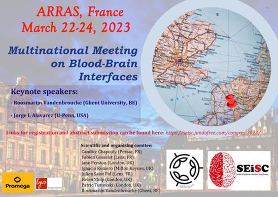 Nous organisons du 22 au 24 mars 2023 un congrès multinational avec des collègues belges et anglais. Différentes sessions seront consacrées, entre autres, aux sujets suivants: modèles de BHE in vitro, passage pharmacologique de médicaments à travers la BHE, organisation du système glymphatique, interactions cellulaires dans l'unité neurovasculaire, développement de la BHE.